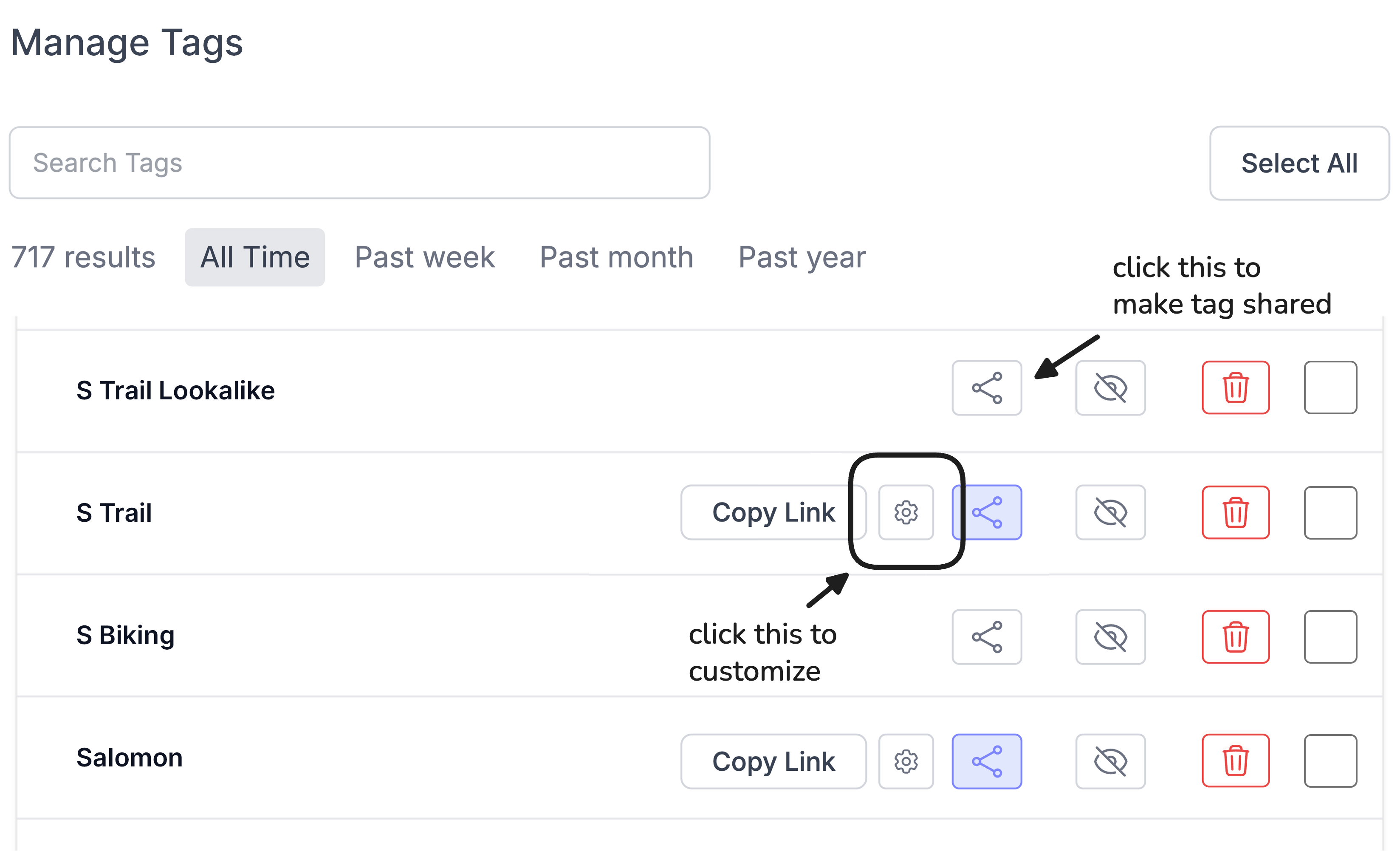 Customize what's shown on the shared tag page: